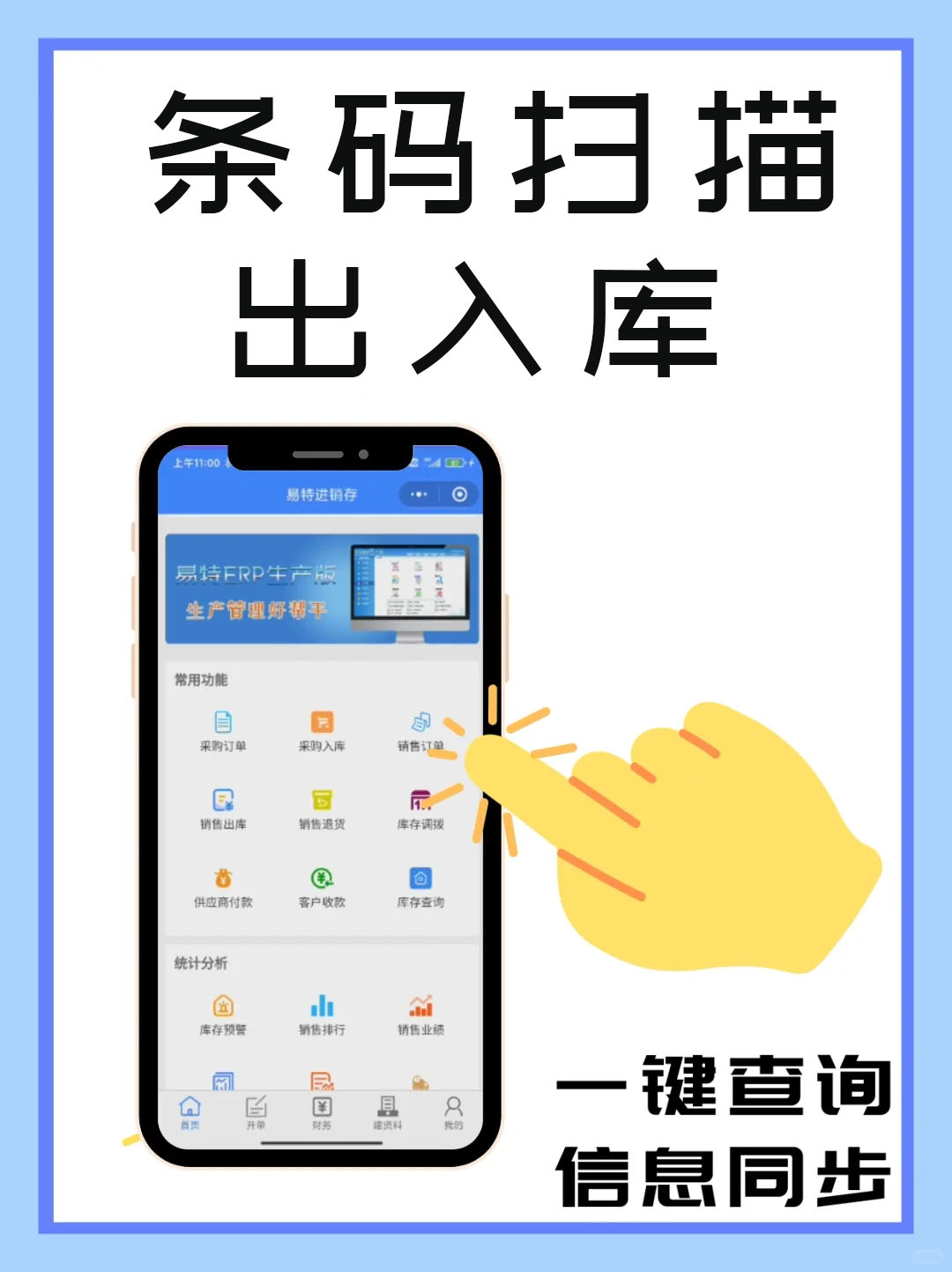 這里以易特進銷存手機版為例教大家用一部手機,教大家實現掃碼出入庫管理
