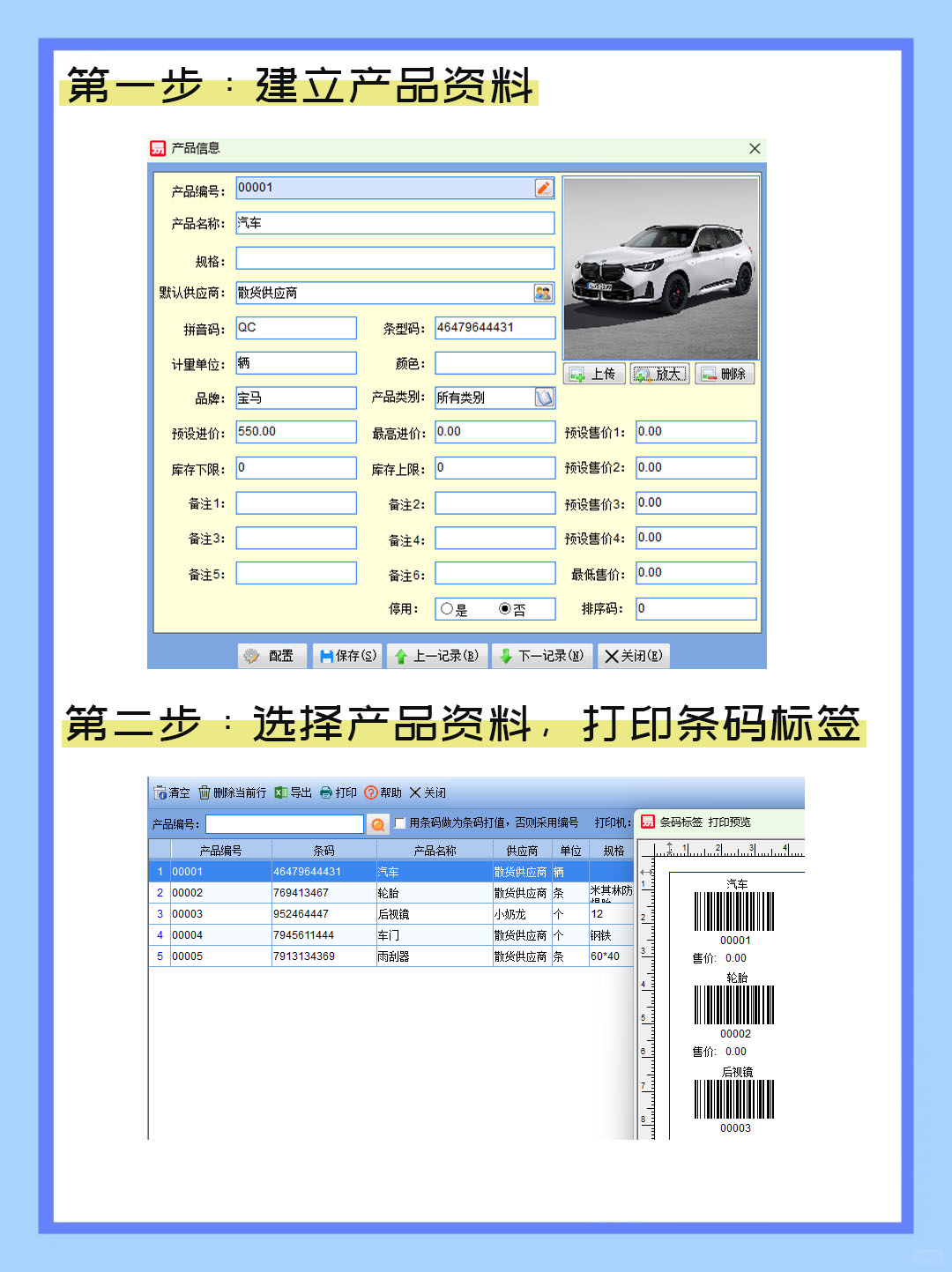 建立產品資料:建立產品資料表,錄入產品相關的基礎信息及條碼值。
