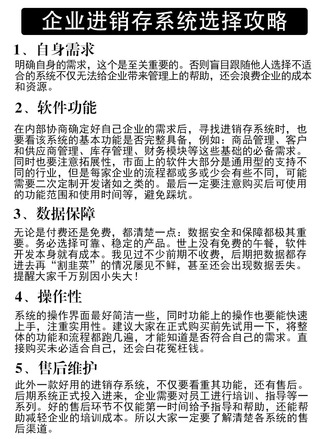 但不同的企業所面對的需求各不相同,市面上的進銷存系統也是各有千秋。經過我長時間的實測后,給大家分享一下幾個選擇進銷存系統時要多注意的點。